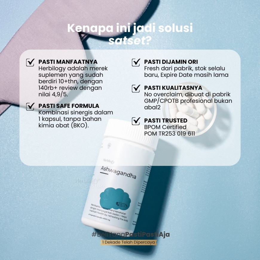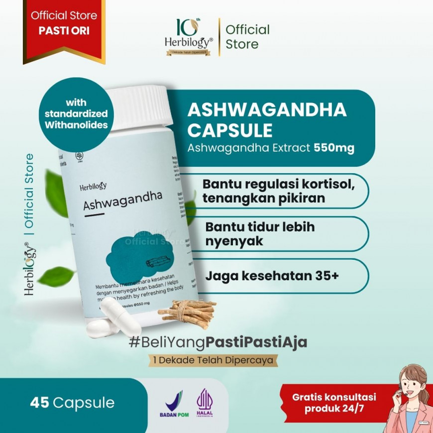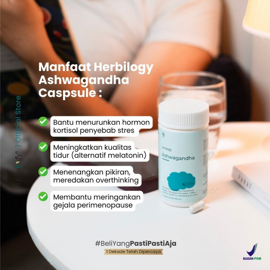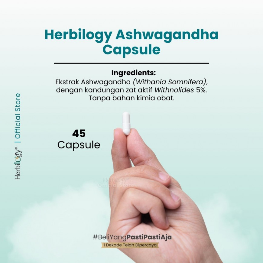 Herbilogy Ashwagandha 45 capsule - Bantu Redakan Stress & Susah Tidur (Herbal Alami Kualitas Tidur/tenangkan pikiran/Overthinking)