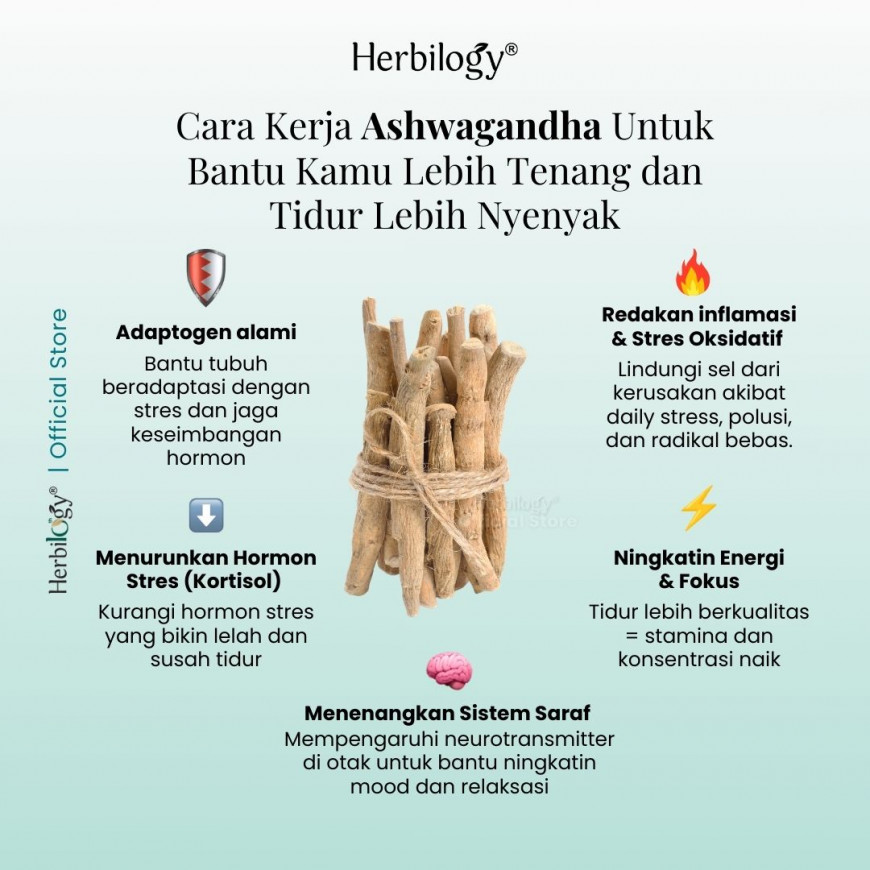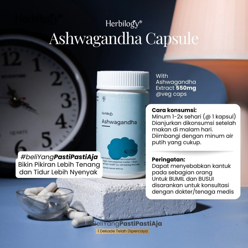 Herbilogy Ashwagandha 45 capsule - Bantu Redakan Stress & Susah Tidur (Herbal Alami Kualitas Tidur/tenangkan pikiran/Overthinking)